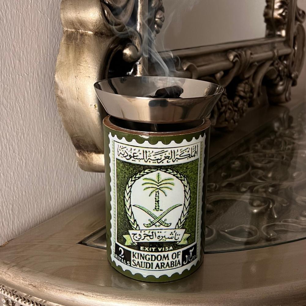 مبخرة بتصميم سعودي مستوحى من الطابع البريدي الكلاسيكي، تحمل هوية المملكة بلمسة تراثية أنيقة. تأتي بلون زيتي فاخر ونقشة ختم الخروج القديمة، مما يجعلها قطعة ديكور مميزة يمكن استخدامها في المنزل أو المكتب.