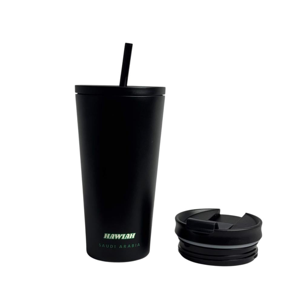 يأتي بلون أسود أنيق يعبّر عن الفخامة، ويحتوي على غطاءين: أحدهما للمشروبات الساخنة والآخر للباردة، مع تصميم مانع للتسرب يمنحك تجربة استخدام آمنة ومريحة.